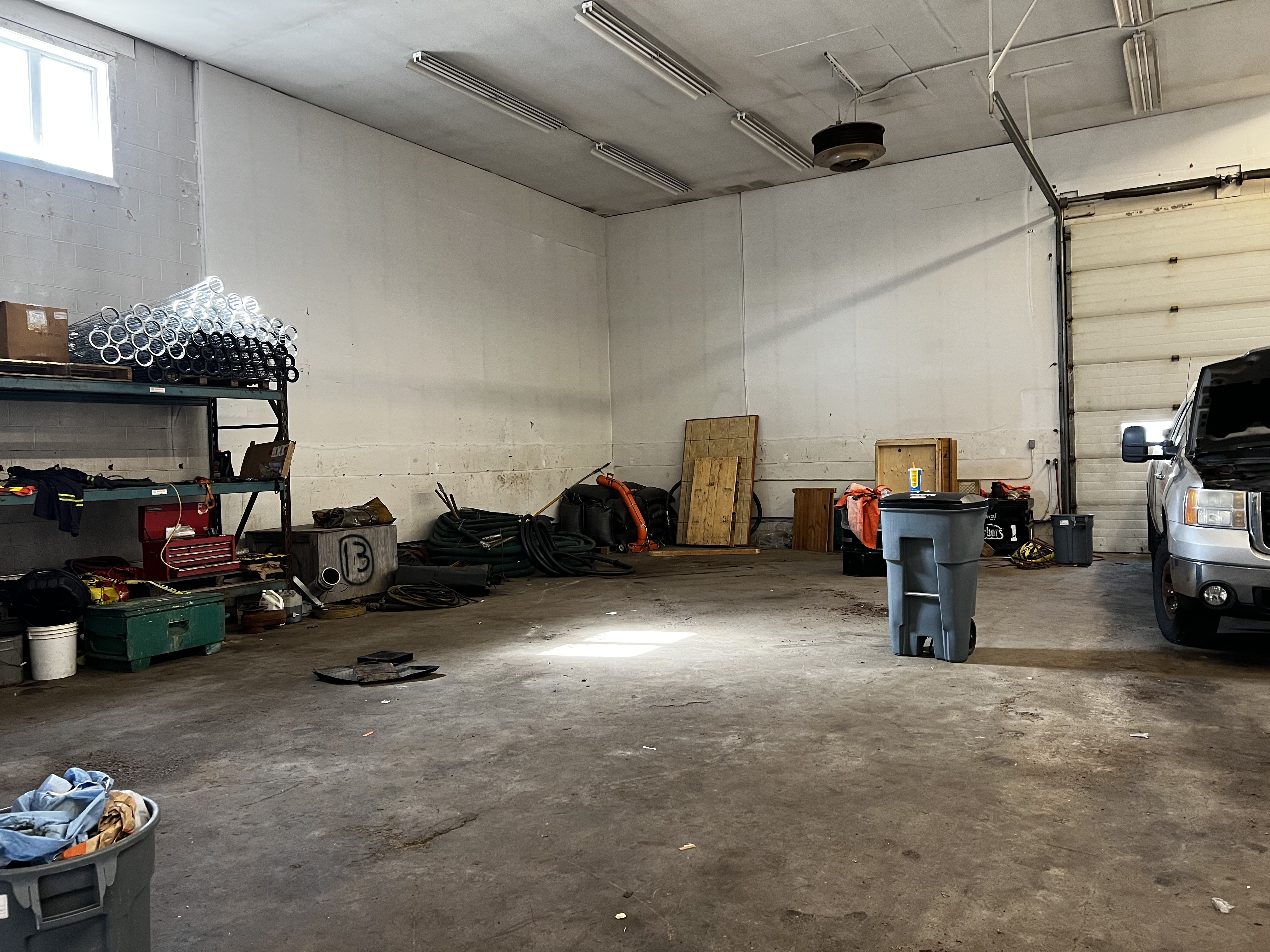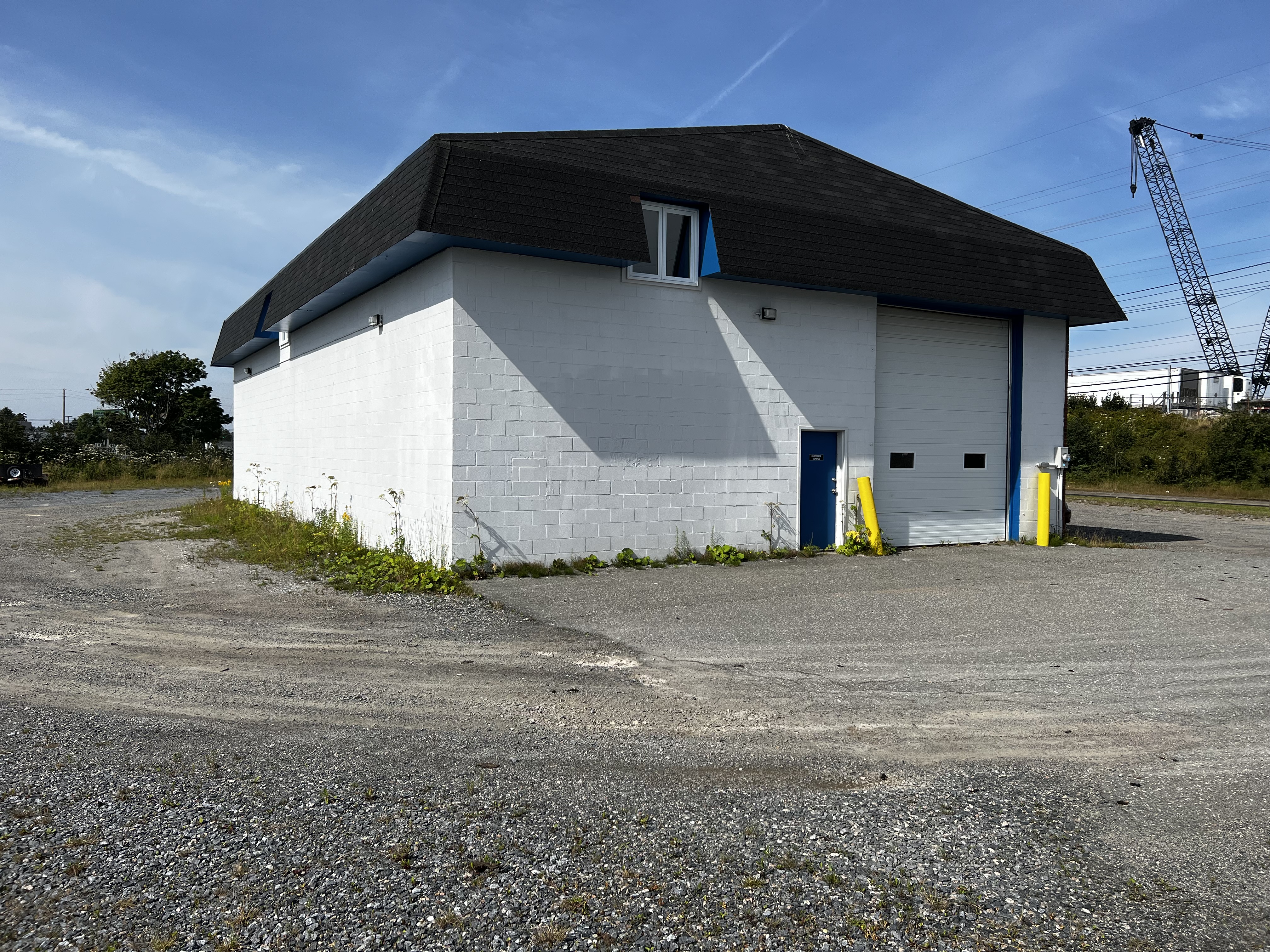 Approx 2,855 sq ft stand along warehouse building. Two 14′ grade level overhead doors (drive-through). Office area with mezzanine.