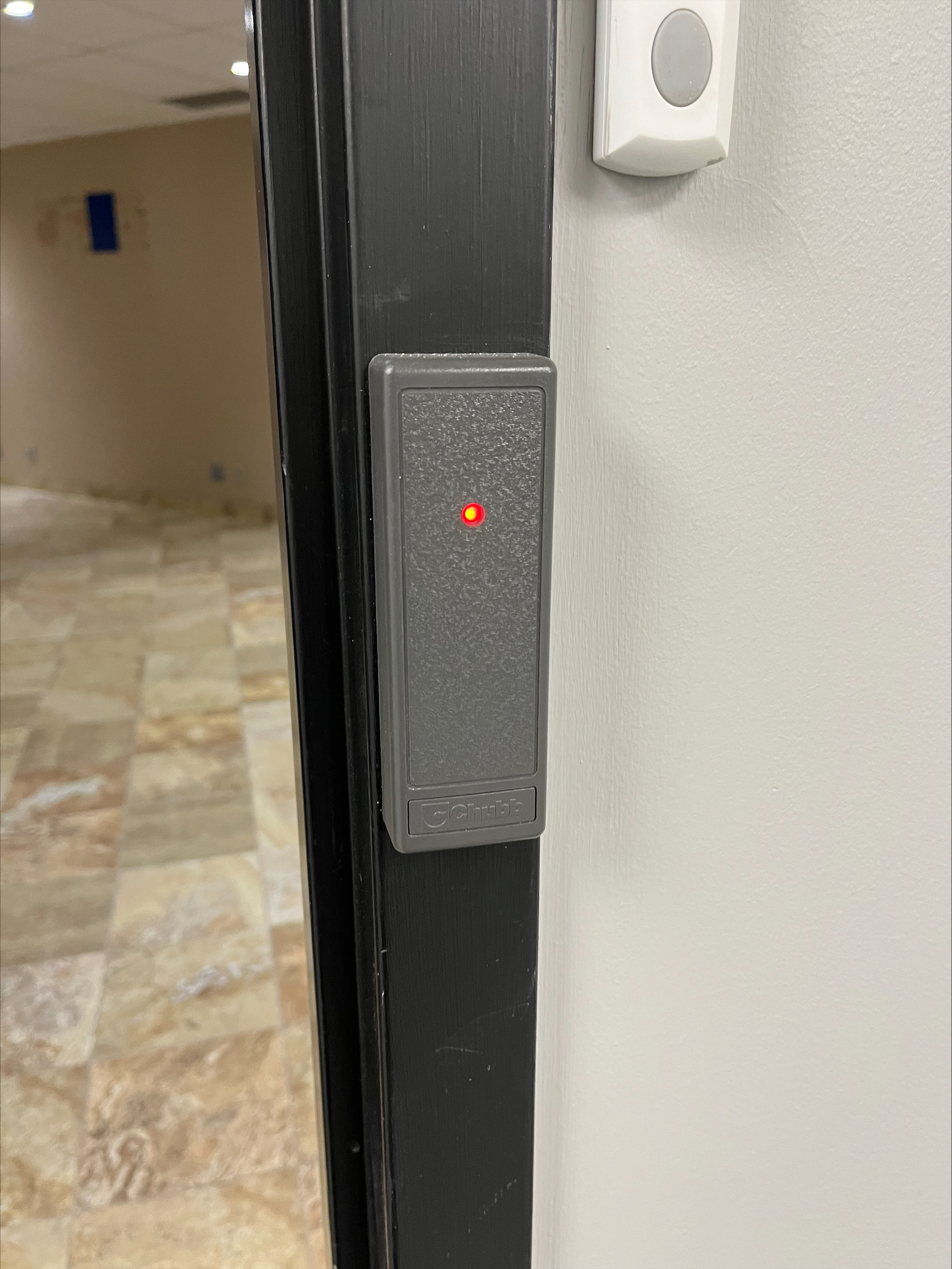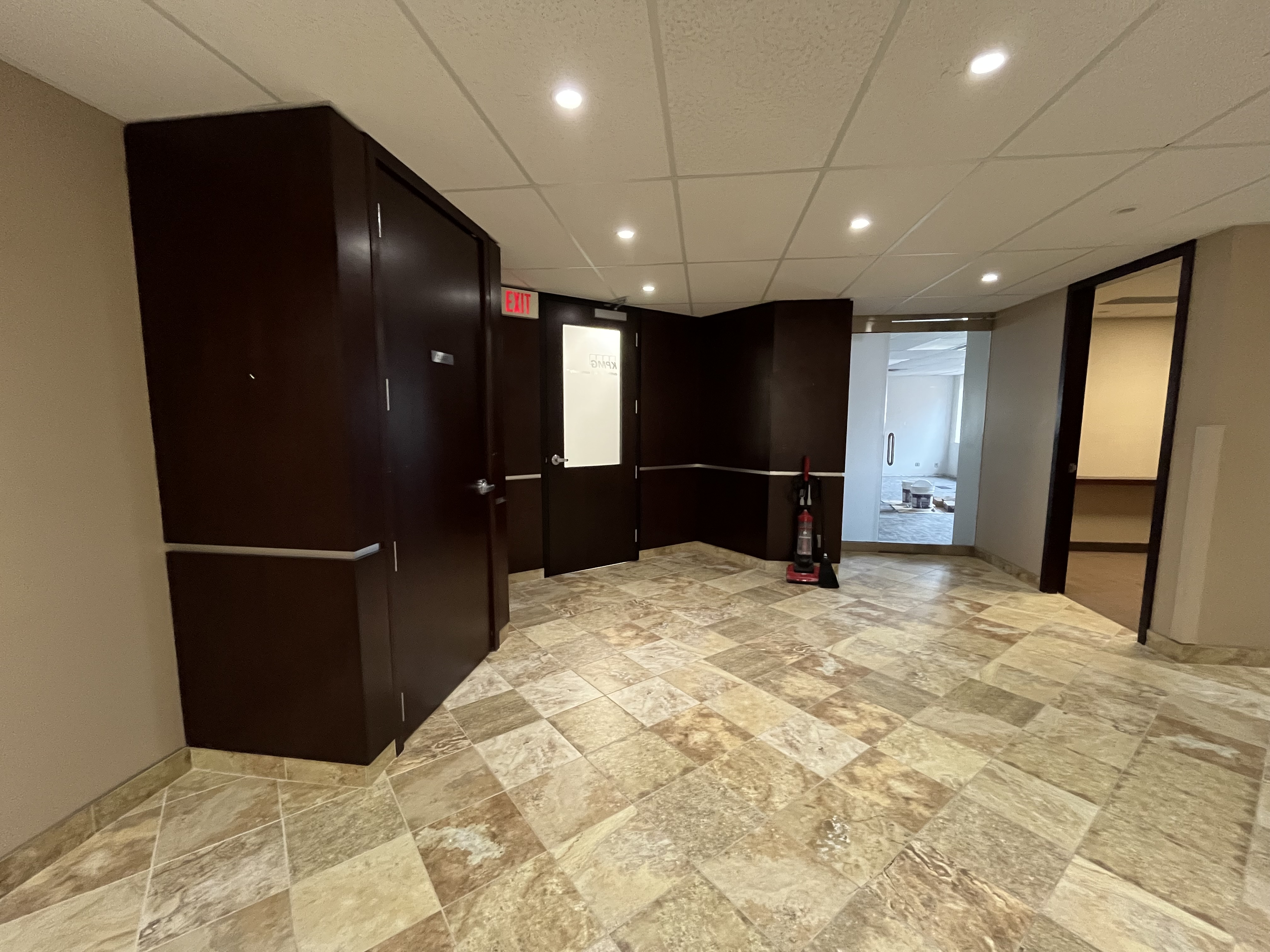 main entrance to suite by exit sign