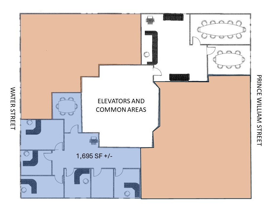 SUITE 305 – (2,131+/- square feet) Current layout features reception area, open area for workstations, boardroom, 2+ private offices and storage room.